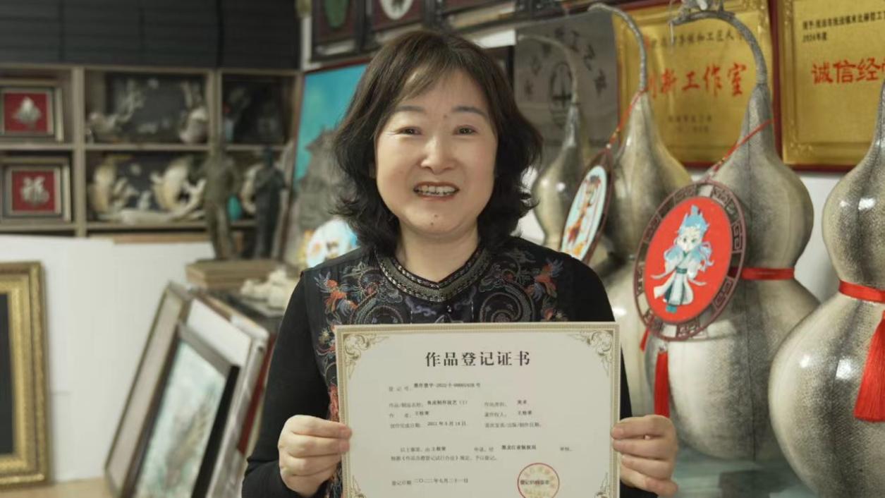 In a studio filled with fish-skin paintings in Tongjiang, Heilongjiang, Yang Shuangyan’s phone keeps ringing. “This copyright certificate is our ‘hard currency’ for entering e-commerce platforms,” she says, pointing to a framed registration certificate. Once a mother who learned the craft while accompanying her child to school, she now leads a team of over 40 artisans, with her works reaching as far as the United States.