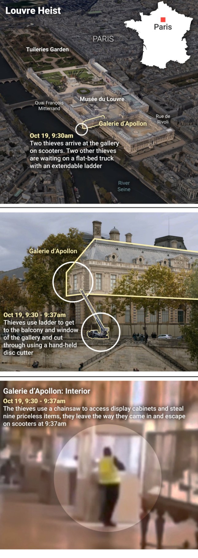 How four thieves managed to make off with priceless jewellery from the Louvre collection (Picture: Metro Graphics)
