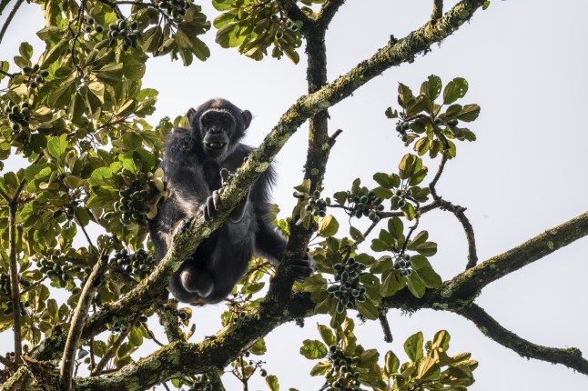 Two adult male members of the Ngogo chimpanzee group at Kibale National Park in Uganda (Picture: Reuters)